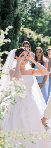 Jordana and Adrien exchanged vows in a romantic garden ceremony, surrounded by cypress trees, lush greenery and the elegant melodies of Ensemble Obbligato on the strings. It was a deeply personal and emotional ceremony, filled with joyful tears and heartfelt promises.